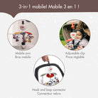 The Tiny Love Tiny Rockers 3-in-1 Take-Along Mobile is an engaging and versatile mobile that accompanies your baby everywhere. From their earliest days, infants will feel comforted and secure with this mobile, which offers 30 minutes of music and 5 original rock 'n' roll melodies to entertain and soothe. The rotating plush dolls provide visual and emotional stimulation, encouraging babbling and cooing, essential for language development.