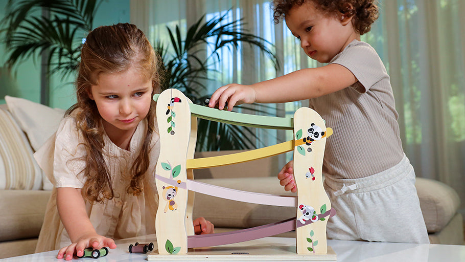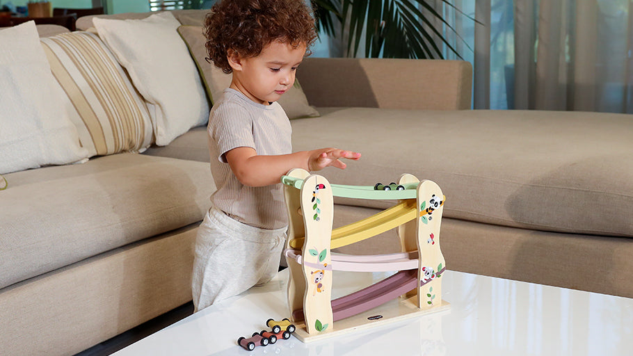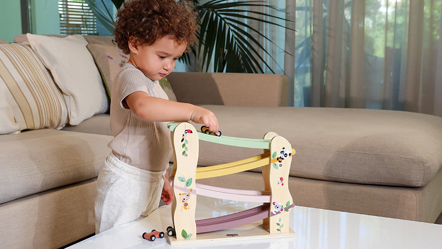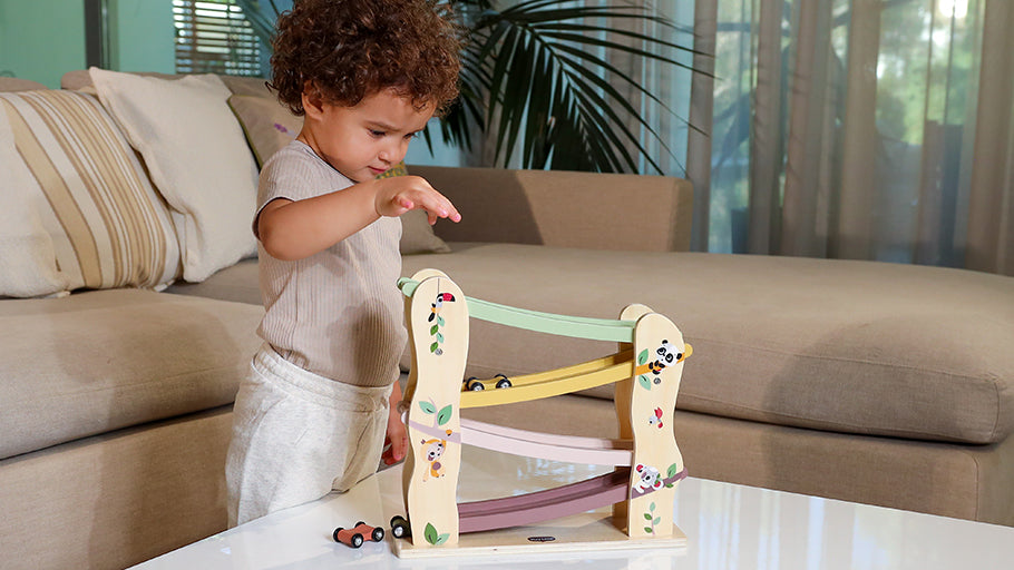 Now confident toddlers, children refine their motor skills at this stage — climbing, running, and jumping — building both physical ability and self-confidence. Their curiosity deepens as they explore the unique properties objects have (color, shape, size). With their advancing cognitive skills, they delight in simple imitation games, making this an exciting stage of play and discovery.