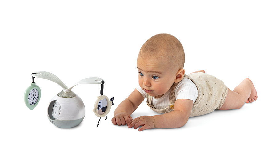 - Brings the mobile experience to tummy time with a wide selection of features and sounds.