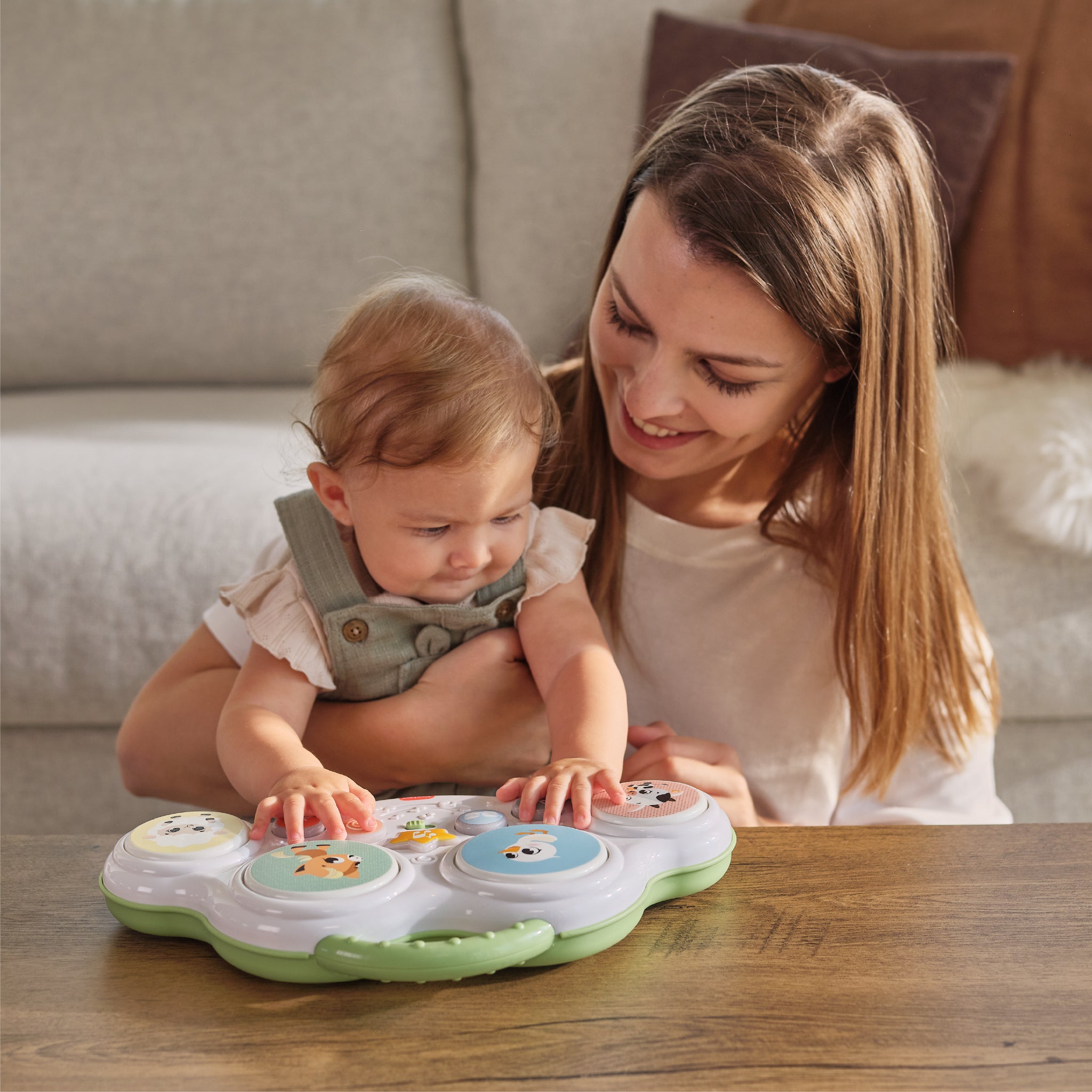 Supports bonding through play as parents and babies explore music and animal sounds together, encouraging interaction and shared discovery.