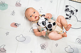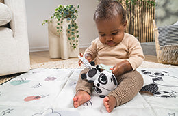 - Soft textures encourage tactile exploration and rattle offer audio stimulation.