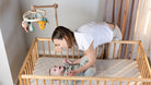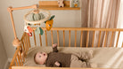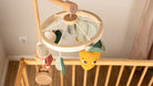 - Wooden lock secures the mobile to the crib or bed.