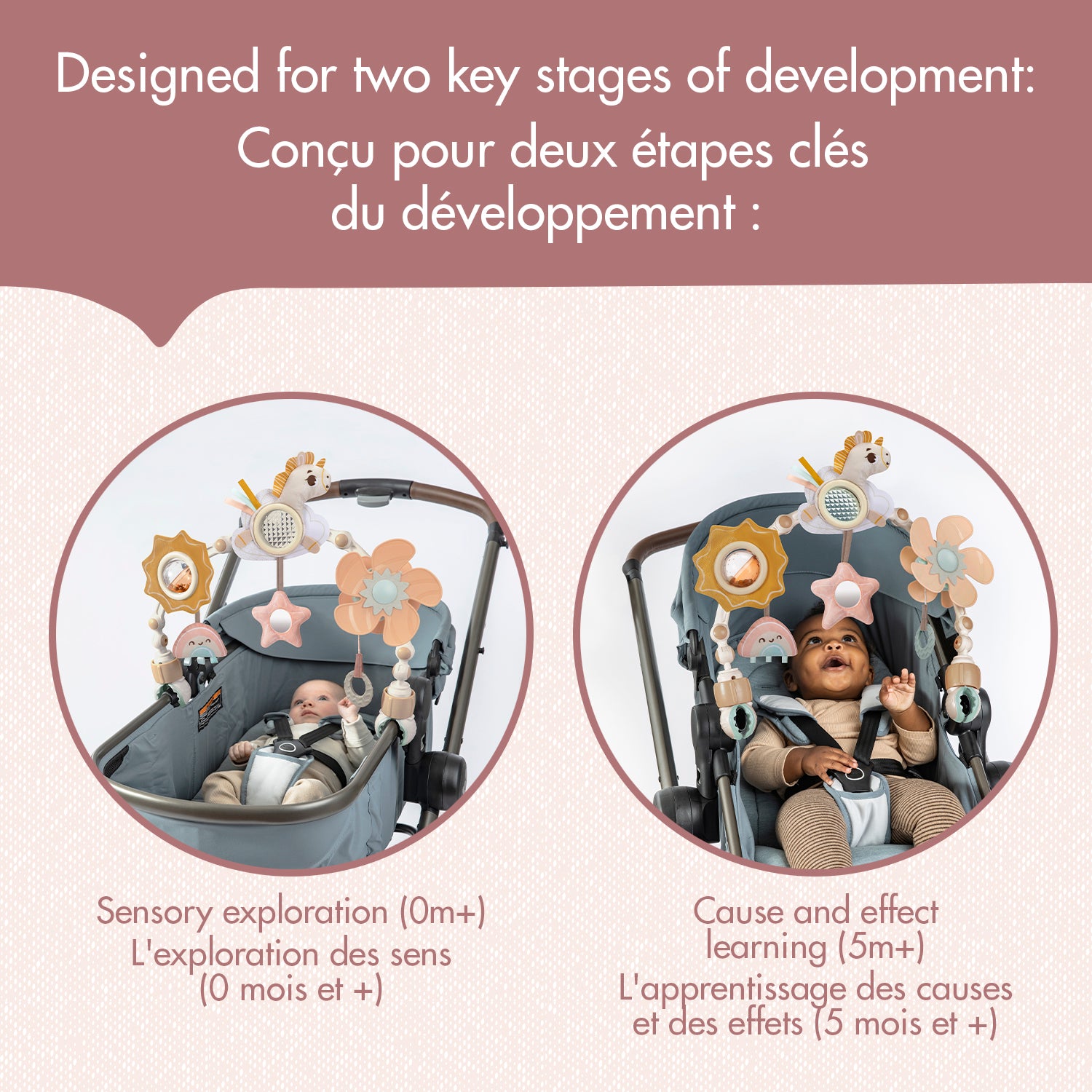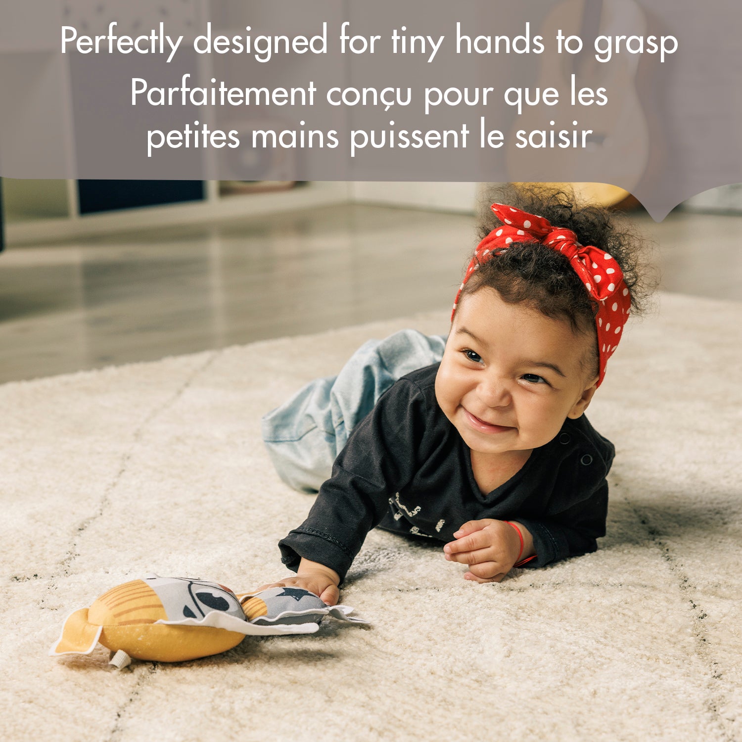 À mesure que votre bébé s'habitue à la vie extra-utérine, ses sens se développent et il acquiert un contrôle élémentaire sur son petit corps. Il commence à s'émerveiller du concept de cause à effet et explore avec curiosité le monde qui l'entoure, principalement avec sa bouche ! Au cours des prochains mois, vous ferez vos premiers pas ensemble dans un merveilleux voyage d'exploration, de découverte et de croissance. Un voyage rempli d'émotions, de défis et de magie.