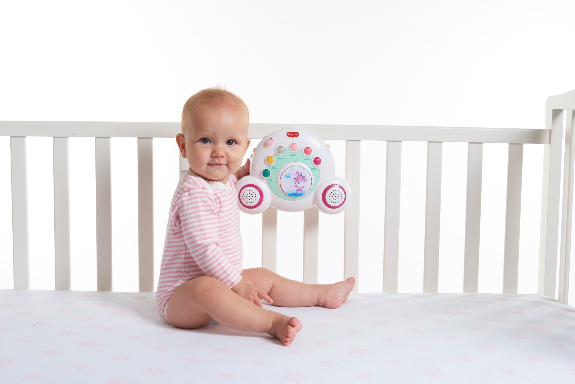 Le mobile apaisant Tiny Princess Tales Soothe 'n Groove Mobile™ est un moyen astucieux de divertir votre enfant, du bébé au tout-petit, à la maison et en déplacement. Cet adorable mobile sur le thème des princesses est deux articles en un. Il grandit avec votre bébé, d'un mobile de berceau à une boîte à musique autonome que les tout-petits peuvent transporter seuls. Avec six catégories musicales différentes et 18 mélodies différentes, votre enfant peut profiter de 40 minutes de musique continue et non répétitive. Le mouvement apaisant spécial du mobile et les adorables jouets sur le thème des princesses captent l'attention de bébé et le maintiennent occupé. Les boutons colorés permettent à votre enfant d'activer et de changer la musique par lui-même pour faciliter l'apprentissage de cause à effet. La conception unique comprend deux haut-parleurs de haute qualité pour un son exceptionnel et un volume facile à contrôler.