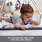 Let your little one explore the shapes on the soft black and white book or marvel at their own reflection in the mirror while practicing tummy time. The spacious and cozy play area let’s babies stretch and experiment with movement and roll over. The playmat's variety of textures, sounds and features provide ongoing auditory and tactile stimulation.
